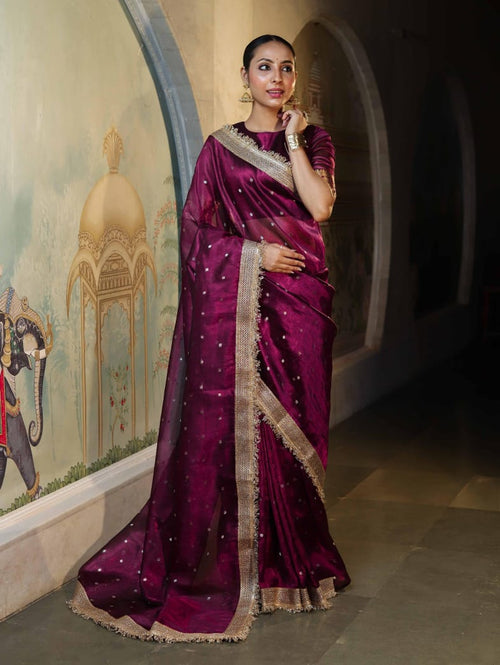 Festive Wine Mysore Silk Saree With Texture Gold Border